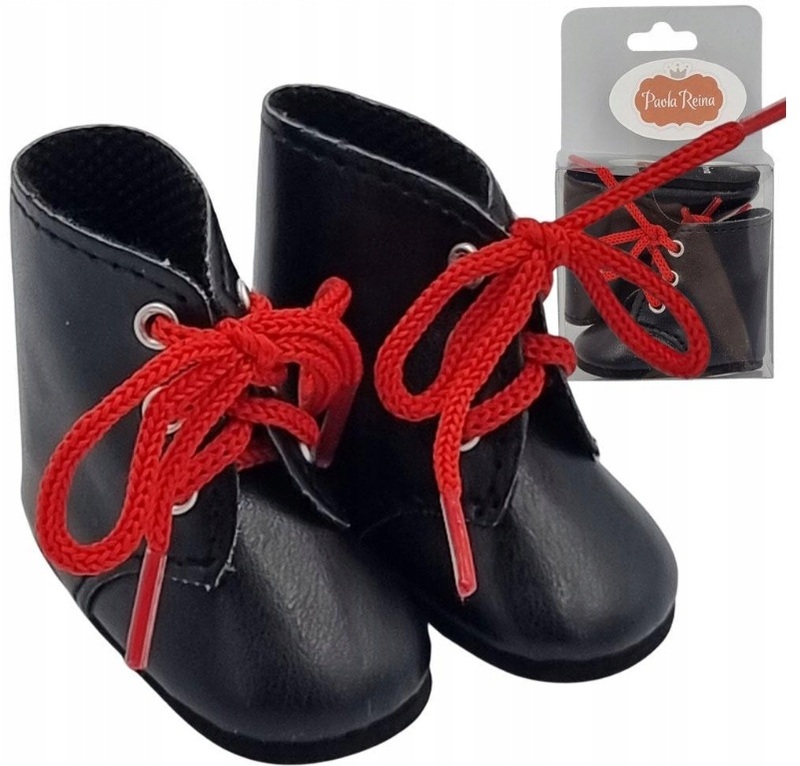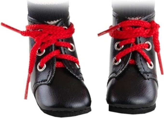 Čierne topánočky na šnurovanies červenými šnúrkami -rozkošné topánočky pre bábiku o veľkosti 32 cm