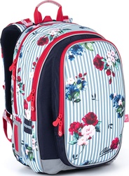 Prúžky a kvety - ruže, to je hitovka pre všetkých romantikov od druhej triedy vyššie. Dvojkomorový objemný a veľmi obľúbený strih s hlbokým predným vreckom vám bude slúžiť aspoň do piatej triedy ZŠ ale aj dlhšie!