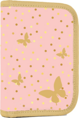 Jednoposchodový školský peračník s 2 chlopňami, prázdny obsahuje 25 gumových pútok na uchytenie písacích potrieb.