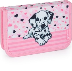 Peračník s drobnými srdiečkami a dalmatínom pre malé školáčky na prvý stupeň. Gumové úchyty na dvoch chlopniach poskytujú dostatok miesta na všetky školské pomôcky. Školské púzdro sa uzatvára kvalitným zipsom. Peračník s motívom dalmatínca je ľahké a v batohu nezaberá veľa miesta.
