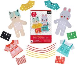 Roztomilá prevliekacia hra v ktorej sú 2 zvierací kamaráti obliekaní do odlišných kusov oblečenia. Hodiny zábavy pri kombinovaní deťom ponúkajú posun v ich predstavivosti. Práca s niťou naopak umožňuje aj tým najmladším získať počiatočné skúsenosti s rôznymi vzormi stehov. Set sa skladá z kocúra, zajačika, 2 nití a 7 outfitov. Rozvíja ďalej obratnosť, koordináciu ruka/oko a pomáha sa pripraviť na zaväzovanie šnúrok.
