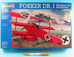 Model letadla ke slepení. Velikost: 1:28; 21,1 cm. Balení obsahuje: 66 dílků ke slepení.Manfred von Richthofen, „Rudý baron“ a jeho rudý Fokker trojplošník vytvářeli historii První světové války. Byl představen západní frontě v červnu 1917 poté, co Generální štáb schválil Fokker Dr. I po rozsáhlých testech a pokračovali schválením leteckého esa Manfreda von Richthofena.Dr. I byl nejobratnější ze všech letounů a dosahoval vysokých rychlostí. Hvězdicový motor Oberursel (výkon 110 koní) dodával Dr.I maximální rychlost 193 km/h a umožňuje mu vzlétnou do 3000 m za šest minut. Dvě Snandau Mg byly instalovány vepředu v kabině. Všichni piloti v Richthofenově skupině řídili rudé trojplošníky. Přestože byl Dr. I koncipován západní frontou na konci roku 1917, pokračoval Rudý baron v řízení tohoto typu aby sestřelil celem 80 nepřátelských letounů předtím, než byl sám sestřelen v dubnu roku 1918.