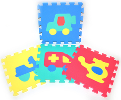 - Jednotlivé penové diely sú vyrobené v rôznych farbách a tvaroch, označenými číslami od 1-10.