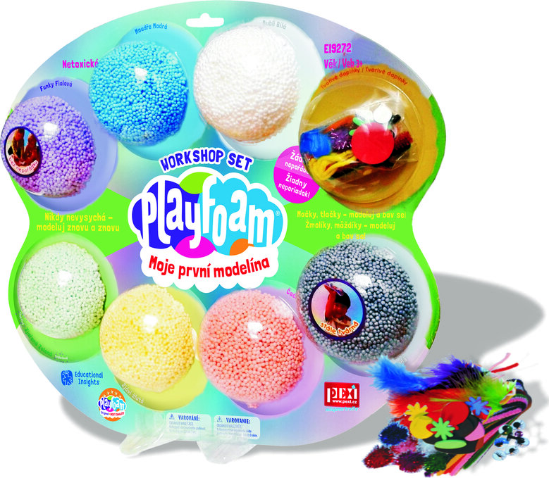 - Penová modelína PlayFoam Boule – Workshop set sa dodáva v priehľadnom puzdre, do ktorého sa po hre môže modelína vrátiť zase späť.