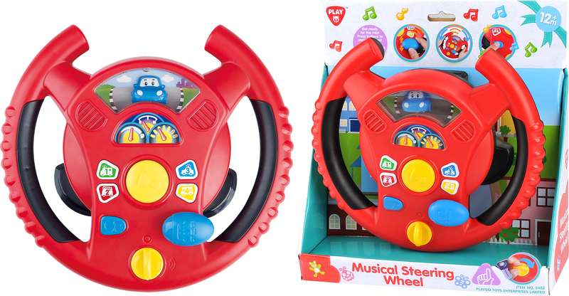 • Zvukové a svetelné efekty - klaksón (tlačidlo uprostred), zvuky jazdy (radiaca páka napravo), tóny a melódie ( malé tlačidlá na volante).
