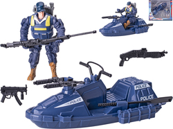 Policajný čln s figúrkou policajta a doplnky.