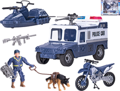 Policajné vozidlá na voľný chod. Súčasťou balenia sú rôzne nevyhnutné policajné doplnky.