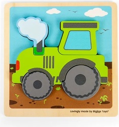 Ideálne prvé puzzle pre najmenšie deti. Skladá sa z piatich robustných dielikov vo veselých farbách veľkostí vhodných pre malé detské ručičky. Keď sa dieliky umiestnia správne, deti sa môžu radovať z roztomilého zeleného traktoru. Skladanie puzzle podporuje rozvoj jemnej motoriky detí, koordináciu ruka-oko, vizuálne rozpoznávanie, pamäť a zručnosti pri riešení problémov. Je vyrobené z prvotriedneho a udržateľného dreva s certifikáciou FSC® a nafarbené netoxickými farbami a lakmi. Spĺňa aktuálne európske bezpečnostné normy.  Hlavné vlastnosti: 5 robustných dielikov, ideálna veľkosť dielikov pre batoľatá, rozvíja jemnú motoriku, zručnosť a koordináciu ruka-okovyrobené z vysoko kvalitných, zodpovedne získaných materiálov s certifikáciou FSC®, vhodné od 12 mesiacov veku Značka a certifikát FSC® (Forest Stewardship Council) zaručuje, že drevo, z ktorého bol výrobok vyrobený, nebolo vyťažené nelegálne a pochádza z lesov obhospodarovaných šetrným či prírode blízkym spôsobom, v ktorom sú dodržiavané prísne environmentálne a sociálne požiadavky. Značka FSC® na výrobku znamená, že svojim nákupom pomáhate chrániť lesy a podporujete šetrné, zodpovedné či prírode blízke hospodárenie, vďaka ktorému sú naše lesy stabilnejšie, zdravšie, majú prirodzenú druhovú skladbu a lepšie odolávajú negatívnym následkom klimatických zmien.
