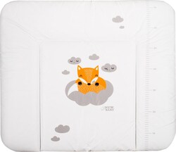 Praktická tvarovaná prebaľovacia podložka s moderným dizajnom New Baby Líška z nepremokavého, plastového materiálu s obrázkom líšky a obláčikov. Podložku možno použiť na komode či inom mieste na prebaľovanie.