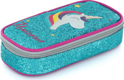 Školské puzdro etue s trblietavým efektom je opatrené pevnými zipsami, vreckom na zips a chlopňou s pevnými pútkami po oboch stranách.