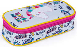Školské puzdro etue je opatrené pevnými zipsami, vreckom na zips a klopou s pevnými pútkami po oboch stranách.