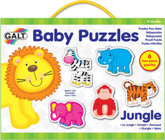 Puzzle pre najmenších, ktoré obsahuje 6 roztomilých skladačiek s motívom zvieratiek v džungli.