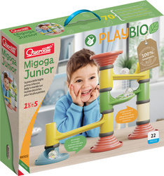 Vďaka stavebnici Migoga Junior sa aj menšie deti môžu hrať s guličkovou dráhou, ktorá bola vytvorená špeciálne pre nich. Všetky diely stavebnice sú veľké a majú rôzne farby, aby sa dali od seba ľahko rozoznať. Spojenia sú jednoduché a intuitívne, čo umožňuje rýchlo postaviť rôzne dráhy. Vyrobené z udržateľných a 100% recyklovateľných materiálov v sérii PlayBio.