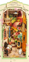 Vytvorte si kúzelnú kvetinovú oázu medzi Vašimi knihami vďaka miniatúrnemu kvetinárstvu. Preneste sa do uličky, v ktorej môžete obdivovať jemné detaily budov, ako sú steny pokryté brečtanom, klenuté okná, prepracované dvere a balkón, pruhované markízy, odpočívajúca mačka a množstvo kvetov. Príjemné LED osvetlenie umocní dojem z tohto prívetivého kvetinového kútika a navodí vo Vašom domove atmosféru pokoja a pohody.
