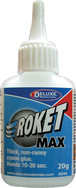 Roket Max sa uplatní pri lepení plastov, vrátane lexanu. Roket Max je možné použiť na aj na tmelenie plastových modelov. Lepidlo dokáže veľmi dobre vyplniť medzery a chýbajúce časti plastových dielov. Po vytvrdnutí je možné spoj štandardne opracovať žiletkou alebo brúsnym papierom a opravené časti tak uviesť do pôvodného stavu, v akom boli pred opravou.