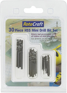 Rotacraft vrtáky HSS s priemerom 0,5mm - 3mm (sada 30ks) v prehľadnej kazete s označením priemeru vrtákov. Rozmery: 0.5mm, 0.6mm, 0.8mm, 1mm, 1.2mm, 1.5mm, 1.8mm, 2mm, 2.35mm, 3mm.