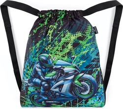 Látkový vak s motorkou na prezuvky alebo cvičebný úbor s bezpečnostnými reflexnými prvkami. Široké popruhy sa nezarezávajú do ramien, ich dĺžku je možné jednoducho nastaviť pomocou plastovej spony.