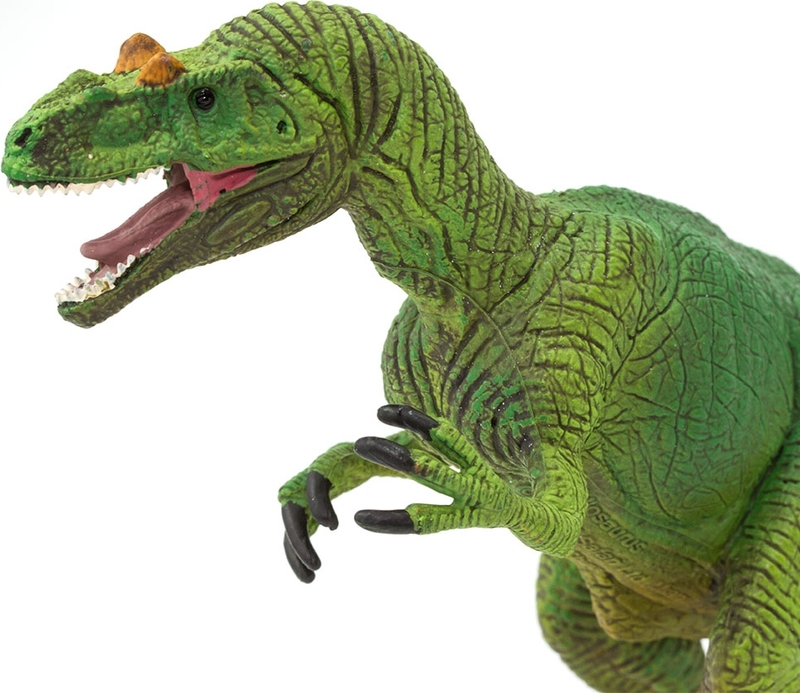 Charakteristika: Allosaurus bol svalnatý mäsožravec s veľkými čeľusťami plnými ostrých, zahnutých zubov. Mal nízky trojuholníkový výčnelok nad každým okom, čo naša figúrka Allosaura presne odráža. Chodil na dvoch dlhých nohách s trojprstými chodidlami a ostrými zahnutými pazúrmi. Mal krátke ramená s trojprstými rukami a dlhý chvost slúžiaci na udržanie rovnováhy. Najväčší Allosaurus dosahoval dĺžku 32 stôp (približne 9,8 metra), čo je veľkosť mikrobusu.