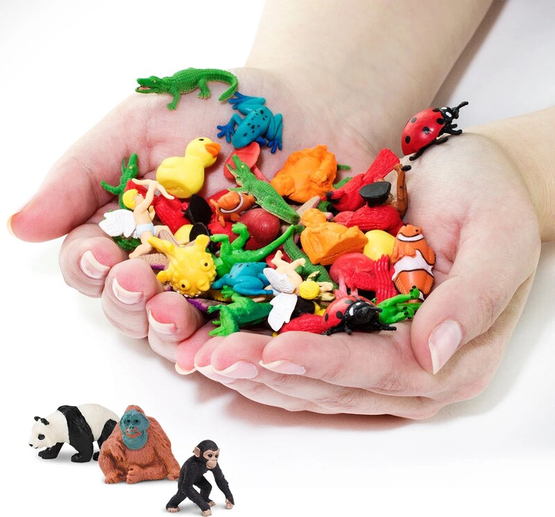 Tento zábavný balíček farebných mini figúrok má rozmery 4 palce (cca 10,2 cm) štvorcových. Samotné zvieracie hračky sú každá o niečo menšia ako kancelárska spinka.