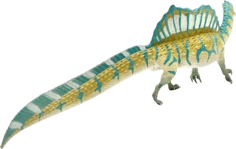 Táto figúrka Spinosaurus je dlhá 9 palcov (cca 22,9 cm) a vysoká 3 palce (cca 7,6 cm) po vrch plachty.