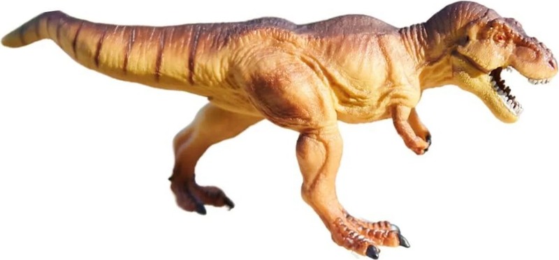 Táto figúrka Tyrannosaura v loveckej póze je dlhá 8,75 palca (cca 22,2 cm) a vysoká 3,25 palca (cca 8,3 cm).