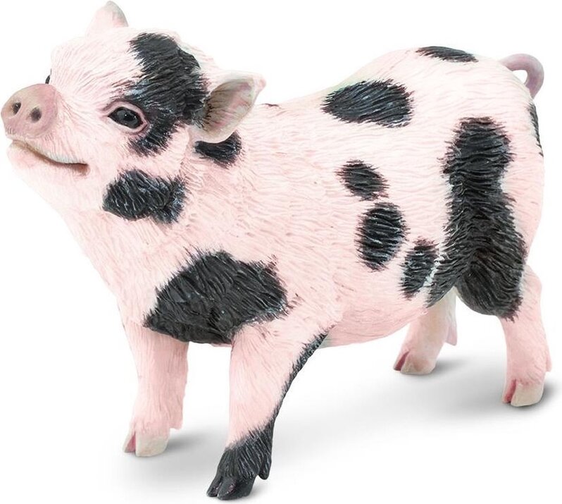 Veľkosť a farba: Náš model všetečného prasaťa, dlhý 5,25 palca (cca 13,3 cm) a vysoký 3,25 palca (cca 8,3 cm), je o niečo väčší ako plechovka od sódy položená na bok. Všetečné prasatá môžu mať mnoho rôznych farieb na základe ich pôvodu, hoci často sú svetlosivé alebo biele s čiernymi časťami.