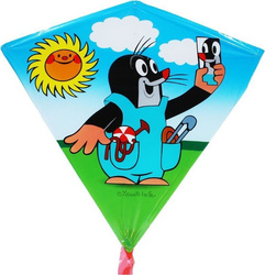 - Drak je modrý s potlačou obľúbeného Krtka so zrkadlom