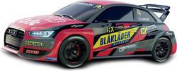 Dráhové autíčko SCX Advance Audi S1 RX - Blaklader v mierke 1:32, verzia 2.0, pre digitálne autodráhy SCX Advance. Autíčko je vybavené LED osvetlením. Na podvozku sa nachádza prepínač digital/analóg - autíčko je možné teda používať na digitálnej autodráhe SCX Advance aj na analógovej autodráhe SCX Original.