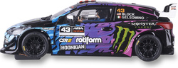 Dráhové autíčko SCX Original Hyundai i-20 WRC Block v mierke 1:32, pre analógové autodráhy SCX Original. Autíčko je vybavené LED svetlami.