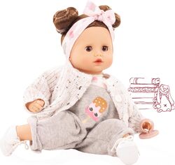 Naša Maxy Muffin Butterfly poteší svojím mäkkým látkovým telom, láskyplnými modrými zatváracími očami a blonďavým zostrihom typu pageboy (mikádo s ofinou). Nie je len krásna bábika oblečená v staroružovom froté oblečení a letných sandáloch, ale aj dokonalá spoločníčka pre malých rodičov bábik, ktorí chcú hravou formou rozvíjať svoju kreativitu a sociálne zručnosti. Hravé učenie a podpora predstavivosti Hra s bábikami podporuje emocionálny rozvoj a podnecuje predstavivosť. Či už ide o úpravu vlasov, obliekanie, alebo láskyplné hranie rolí – Maxy Muffin je dokonalou kamarátkou pre každé dieťa. Jej vysokokvalitné vlasy sú odolné, dajú sa upravovať, umývať a česať, čo umožňuje malým kaderníčkam popustiť uzdu svojej kreativite s priloženou kefou na vlasy. Pre naše bábiky používame len vysokokvalitné vlasy s prirodzeným vzhľadom. Sú pevne všité do hlavy bábiky, vďaka čomu sú mimoriadne trvácne. Vysoká kvalita a láskyplné detaily Naše bábiky Maxy Muffin majú mäkké látkové telo vyplnené nadýchanou výplňou a granulami. Ich ruky a nohy sú vyrobené z vinylu. Oblečenie sa ľahko oblieka a vyzlieka, takže manipulácia je jednoduchá aj pre malé ručičky. Cumeľ poskytuje extra zábavu pri hraní a robí Maxy Muffin ešte realistickejšou. Súprava obsahuje: Maxy Muffin (cca 570 g) Letný outfit Čiapka Gumové sandále Cumeľ Kefa na vlasy a 2 gumičky do vlasov Špeciálne vlastnosti: Mäkké telo s vinylovými rukami a nohami Upraviteľné blond vlasy Možné prať v práčke a sušiť v sušičke Perfektný darček pre kreatívne hranie rolí Odporúčané pre deti od 3 rokov (predpokladané odporúčanie pre túto sériu bábik). UPOZORNENIE: Pred odovzdaním hračky dieťaťu odstráňte a zlikvidujte všetky šnúrky a obalový materiál. Nevhodné pre deti do 3 rokov. Obsahuje malé časti, ktoré by mohli byť prehltnuté. Riziko udusenia. Informácie o výrobcovi: Götz Puppenmanufaktur Int. GmbH Einberger Straße 113 96472 Rödental Germany Email: shop@goetz-puppen.de Telefón: +49 9563 909-75