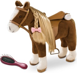 Hannah a jej psík zaujmú svojím prirodzeným, očarujúcim vzhľadom: Jej dlhé ryšavé vlasy nabádajú deti k ich umývaniu a úprave, zatiaľ čo jej láskyplne vytvorená tvár a útulný zimný outfit – ktorý zahŕňa melírovaný pletený kabát, džínsy, gumáky a huňaté chrániče sluchu – podnecujú kreativitu pri hre.Podpora hravého učenia a kreativityHra s bábikami rozvíja detskú predstavivosť a sociálne zručnosti. Hannahina krásne navrhnutá herná téma ponúka nespočetné množstvo príležitostí na kreatívne hranie rolí. Či už ide o venčenie jej psíka, alebo úpravu Hannahiných vysokokvalitných a odolných vlasov – umývanie, česanie a styling – vždy je čo nové objavovať! Jej plne pohyblivé a polohovateľné vinylové tvrdé telo ju robí obzvlášť realistickou a trvácnou.Vysoká kvalita a premyslený dizajnHannah patrí do rodiny bábik GÖTZ, ktoré sú číslované a vyrábané v limitovaných edíciách podľa najvyšších štandardov kvality. Jej tvár navrhli renomovaní výtvarníci bábik. Ako znak kvality je ku každej bábike GÖTZ priložený certifikát a pečať GÖTZ. Na bábiku sú použité len vysokokvalitné vlasy s prirodzeným vzhľadom. Vlasy sú všité do hlavy bábiky a sú extrémne odolné. Deti ich môžu ľahko umývať, česať a upravovať (pozri informácie o produkte). Možnosti nápaditej hry sú takmer neobmedzené.Súprava obsahuje:  Hannah (cca 820 g)  Džínsy  Pletená bunda/kabát  Tričko s dlhým rukávom  Chrániče sluchu (Earmuffs)  Gumáky  Plyšový pes s vodítkom  Taška na nosenie psa  Psia pláštenka (Dog cape) Vinylové tvrdé teloMožné umývať povrchovoPlne pohyblivá a polohovateľnáVhodné pre deti staršie ako 3 roky, túto bábiku odporúčame pre deti od 5 rokov. UPOZORNENIE: Pred odovzdaním hračky dieťaťu odstráňte a zlikvidujte všetky šnúrky a obalový materiál. Nevhodné pre deti do 3 rokov. Obsahuje malé časti, ktoré by mohli byť prehltnuté. Riziko udusenia. Informácie o výrobcovi: Götz Puppenmanufaktur Int. GmbHEinberger Straße 11396472 RödentalGermany Email: shop@goetz-puppen.deTelefón: +49 9563 909-75