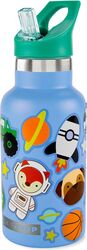 SKIP HOP Fľaša so slamkou nerezová s nálepkami canteen modrá 380 ml,