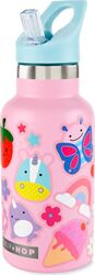SKIP HOP Fľaša so slamkou nerezová s nálepkami canteen ružová 380 ml,