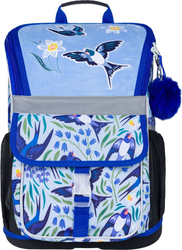 Trojkomorový školský batoh pre malých dobrodruhov od 1. do 3. triedy. Ergonomicky tvarovaný chrbát s hrudným a bedrovým pásom zabezpečí, že malí prieskumníci budú cestovať pohodlne a bezpečne. A to aj v tme, vďaka reflexným prvkom. Súčasťou setu je zladený vrecko s peračníkom. Sada pre malých školákov od 1. do 3. triedy obsahuje trojkomorový superľahký batoh, jednokomorový peračník s dvoma chlopňami, školské látkové vrecko na papuče alebo oblečenie. BEZPEČNÝ BATOH LUMI PRE MALÝCH OBJAVITEĽOVV Je veľmi ľahký – váži len 0,98 kg.  Má tri priestranné priehradky. Do hlavného sa zmestia veľké školské zakladače, ako aj učebnice a zošity formátu A4. Hlavná komora má aj kompresné vrecko s elastickými bočnými popruhmi na zakladače A4 a veľké učebnice. Pomáha ťahať a držať ťažké pomôcky čo najbližšie k chrbtu, takže školák alebo školáčka má ťažisko blízko chrbtice a pri chôdzi sa nehrbí. Predné vrecko má praktický organizér na mobilný telefón, ceruzky, slúchadlá a peňaženku. Na čiernu pracku v prednom vrecku môžete pripevniť sieťovanú tašku. Na peniaze, slúchadlá alebo výtvarné potreby. Do vrecka na zips sa zmestí powerbanka. Nabíjací kábel stačí prevliecť cez otvorenú rolku do telefónu v organizéri.  Po stranách sú vrecká na fľašu s nápojom alebo dáždnik.  Ergonomicky tvarovaný chrbát a priedušný bedrový pás podporujú správne držanie tela.  Pružný hrudný pás napomáha stabilite batohu na chrbte. Zabraňuje skĺznutiu ramenných popruhov z ramien.  Ramenné popruhy a chrbtový systém sú mäkko polstrované. Popruhy sú nastaviteľné pomocou hornej a dolnej plastovej pracky. Dĺžku je potrebné upravovať podľa toho, ako školáčka rastie. Konce popruhov sú magnetické. Aby sa netrblietali, stačí ich pomocou magnetu pripnúť na plastovú pracku. Sieťované vrecko nie je súčasťou výrobku.