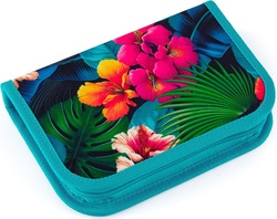 Jednokomorové školské puzdro s dvoma chlopňami je vybavené 21 klasickými gumovými úchytmi na pastelky a fixky, troma širšími úchytmi na pravítka, kružidlo či nožnice, a dvoma väčšími úchytmi na gumu a strúhadlo. Pod chlopňou z priehľadnej fólie nájdete rozvrh hodín ale poslúži napríklad aj na ťaháky ;-)