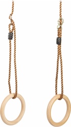 Aj najnáročnejšie zostavy si môžu nacvičiť doma na záhrade. Kruhy sú veľkosťou prispôsobené aj menším deťom. Laná sú jednoducho výškovo nastaviteľné a na koncoch opatrené kovovými krúžkami na zavesenie.