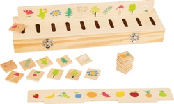 Roztrieďte rastliny, plody a zvieratá podľa druhov, nechajte dieťa rozpoznávať farby a tvary. Všetky diely, hracie dosky a štvorcové žetóny sa dajú pohodlne uložiť a zbaliť na cesty. Vyrobené zo 100 % certifikovaného dreva FSC®.