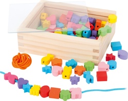 Small Foot Drevené navliekacie korálky tvary v krabičke