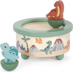 Klasická hracia skrinka s motívom dinosaurov je vyrobená z 100% FSC® dreva. Jej jemné farby a roztomilí dinosauri spolu s príjemnou melódiou Carousel Waltz Richarda Rodgersa upútajú pozornosť každého dieťaťa. Vďaka kvalitným farbám a modernému dizajnu bude hracia skrinka vkusnou dekoráciou do detskej izby.