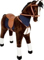 Koník ako z rozprávky! Skvelý spoločník do detskej izby, ktorý roztomilou šatkou očarí každého, nielen kovboja. Mäkko vypodložené sedlo je odnímateľné a dá sa tak trénovať aj strojanie zvieraťa. Po stlačení jeho ucha sa ozve hlasné začervenanie a klapot kopýt (batérie nie sú súčasťou balenia).