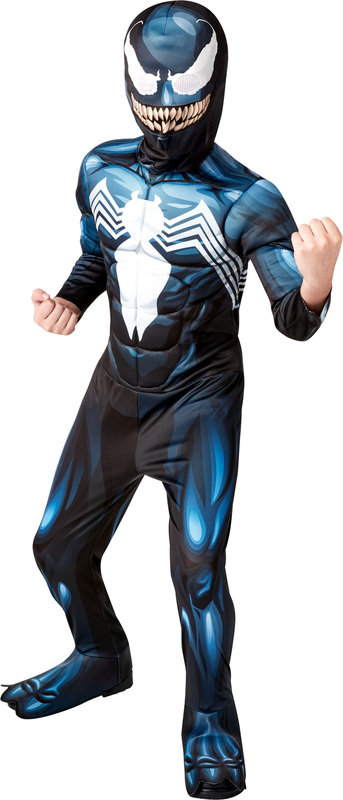 Nech nastane masaker! Uvoľnite obľúbenú mimozemskú symbiotickú formu života v tomto zlom deluxe detskom kostýme Marvel Venom. Anti-hrdina nikdy nevyzeral tak dobre vo vypchatej kombinéze s pripevnenými návlekmi na topánky a látkovou maskou.