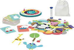 Zábavná hra, ktorá rozvíja dětskú predstavivosť a postreh. Vezmite si kartu a do minúty zostavte obrázok z dostupných tvarov. Hra pre všetkých od 4 do 99 rokov. V závislosti od veku hráčov môžete čas na riešenie predĺžiť, alebo hrať bez časového obmedzenia. Hra je spolu českým a slovenským návodom dodávaná v praktickom kartónovom horúčave opatrenom potlačou v češtine. Hlavné vlastnosti: 4 figurky, 250 dielikov, 100 kariet predlôh, presýpacie hodiny a bodovacia tabuľka pre 3-6 hráčov atraktívne spracovanie praktické balenie Pravidlá hry Zlož do minúty: Zlož do minúty SÓLO (pre najmenej 3 hráčov, jeden hráč pomáha ostatným hádať) Všichni hráči umiestnia svoju figurku na začiatok bodovacej tabuľky. Jeden hráč si vezme jednu kartu s obrázkom a neukáže ju ostatným hráčom. Bez toho, aby čokoľvek povedal, má hráč jednu minútu na to, aby z čo najväčšieho počtu drevených dielikov zostavil kartu s obrázkom a pomohl tak ostatným hráčom uhádnuť, aký obrázok je na jeho karte. Hráč, ktorý uhádne ako prvý, získa bod a posunie svoju figurku na bodovacej tabuľke dopredu. Hráč, ktorý uhádol obrázok, získa aj bod a posunie svoju figurku na bodovacej tabuľke dopredu. Použitá karta sa odloží. Ak hráč, ktorý zložil obrázok, pomôže ostatným hráčom uhádnuť, čo je na karte v stanovenom čase, alebo sa ozve, nedostane žiadne body a karta sa vráti na spodok balíčka. Potom je na rade ďalší hráč. Vyhráva hráč, ktorý ako prvý dostane figurku na políčko s králikom. Zlož do minúty TÝM (pre najmenej 4 hráčov) Každý tým umiestni svoju figurku na začiatok bodovacej tabuľky. Hráči sú rozdelení do tímov po dvoch alebo troch. Jeden hráč si vezme kartu s obrázkom bez toho, aby ju ukázal ostatným hráčom. Bez toho, aby čokoľvek povedal, má hráč jednu minútu na to, aby z čo najväčšieho počtu drevených dielikov poskladal kartičku s obrázkom a pomohl tak týmu uhádnuť, aký obrázok je na jeho kartičke. Tým má jednu minútu na uhádnutie obrázku na karte. Ak tým uhádne, posunie svoju figurku na bodovacej tabuľke dopredu. Ak hráč, ktorý obrázok poskladal, pomôže ostatným hráčom v tíme uhádnuť, čo je na karte v stanovenom čase, alebo sa ozve, tým nedostane žiadne body a karta sa vráti na spodok balíčka. Potom je na rade ďalší tým. Vyhráva tým, ktorý ako prvý dostane figurku na políčko s králikom. Rozmery balenia: 16x16x16 cm Vek: 4+ Materiál: drevo, papier Československý obal.