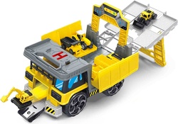 - Obsahuje sklápač, stanicu s voľnými kolesami, 1 malé stavebné auto (bager), polepy.
