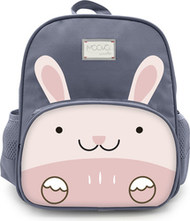 Batoh do škôlky so širokým otvorom, predným vreckom a dvoma bočnými sieťovanými vreckami.