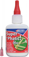 Super Phatic je univerzálne riedke lepidlo, ktoré môže byť alternatívou k riedkym kyanoakrylátovým lepidlám. Je netoxické, lepí bez zápachu, nezaschnuté lepidlo je možné zmyť vodou. Veľmi dobre sa vsakuje do balsy a dreva. Lepia balsu, drevo, plastové pánty, penové materiály a kompozity. Po vytvrdnutí je lepidlo vodovzdorné.