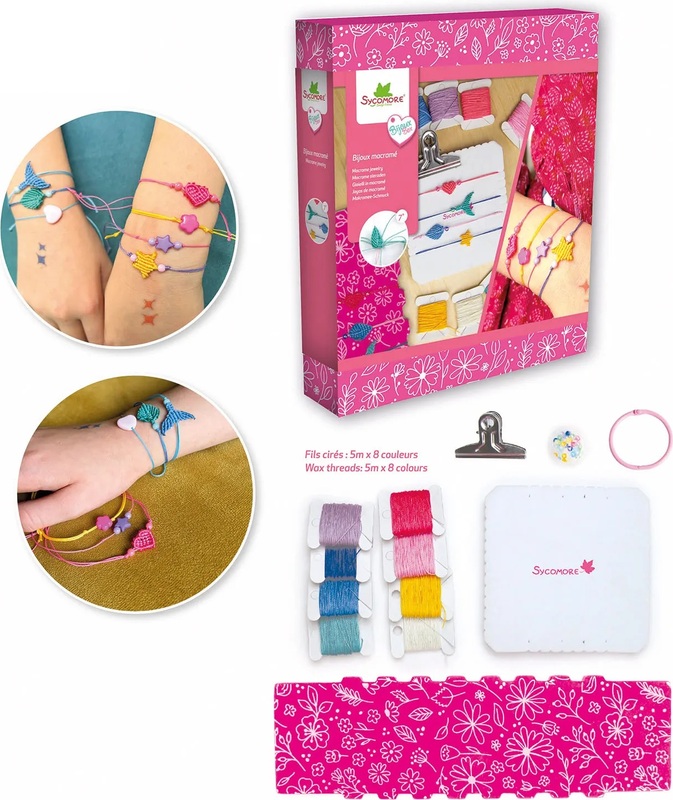Vytvárajte originálne náramky a šperky pomocou techniky makramé! Táto farebná sada obsahuje voskované nite v 8 farbách, korálky, šablónu, kovový klip na uchytenie a ďalšie doplnky – všetko, čo potrebujete pre vlastné štýlové výtvory. Ideálne pre deti od 7 rokov, ktoré rady tvoria a skúšajú nové techniky. Hotové originálne náramky sa budú skvele vynímať ako módne doplnky.