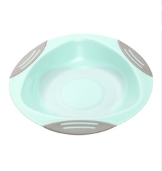 Tanierik a miska obsahujú prísavku, ktorá prilieha k povrchu stola alebo detskej jedálenskej stoličky (povrch musí byť čistý, aby sa prísavka správne pripevnila).