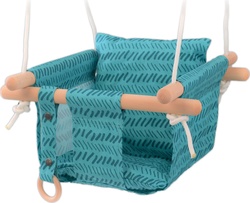 Detská textilná hojdačka zo 100% bavlny a pevného dreva, s 2 karabínami na zavesenie a výškovo nastaviteľnými lanami.