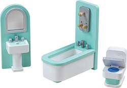 Krásny nábytok z bukového dreva sa bude hodiť do každého domčeka pre bábiky, má jednoducho všetko, čo budú deti potrebovať na vytvorenie kúpeľne pre bábiky, ktoré sa potrebujú o seba postarať po celom dni plnom hier. Set so šiestimi kusmi zahŕňa sprchovací kút s textilným závesom, vaňu, umývadlo so zrkadlom, toaletu a 2 kúpeľňové doplnky v podobe gumovej kačičky a špongie. Po pernom dni plnom hry vonku na záhrade môžu deti svoje bábiky poriadne umyť. Krásne detailný set sa bude hodiť do domčeka pre bábiky Tidlington (T0220) a iné domčeky štandardnej veľkosti.