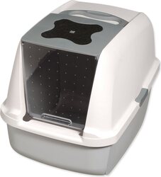 Priestorná toaleta s vysokým spodným dielom a systémom, ktorý zabraňuje pretečeniu moču medzi vrchným a spodným dielom. Má jednoduché otváranie a zatváranie pomocou posuvných páčok a vyklápacie dvierka s vymeniteľným uhlíkovým filtrom, ktorý zachytáva a redukuje pachy. Držiak na sáčok pre použitú podstielku umožňuje jej jednoduchšie odstránenie.